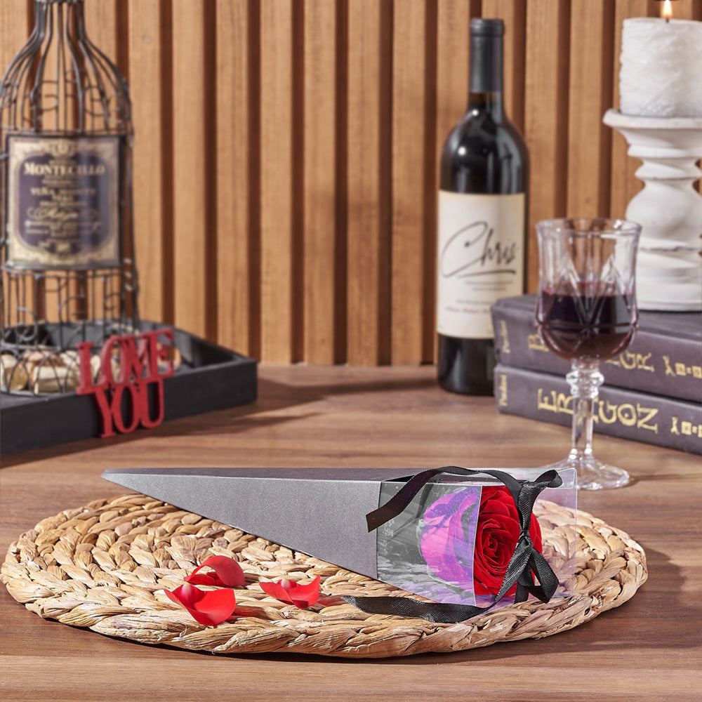 Flower - Single Red Rose : This gift includes a single red rose placed into a protective box for gifting.